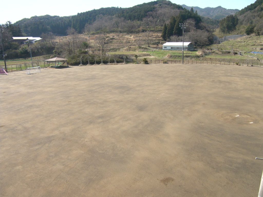 工事名 :平成25年度 大田統合小学校グランド改修工事 工事場所:大分県杵築市大田石丸 契約工期:平成26年3月完成 発注者 :杵築市役所 工事概要:グラウンド改修 (基盤整備工、グラウンド整地工、排水工、競技施設工、防護柵工、遊具工)